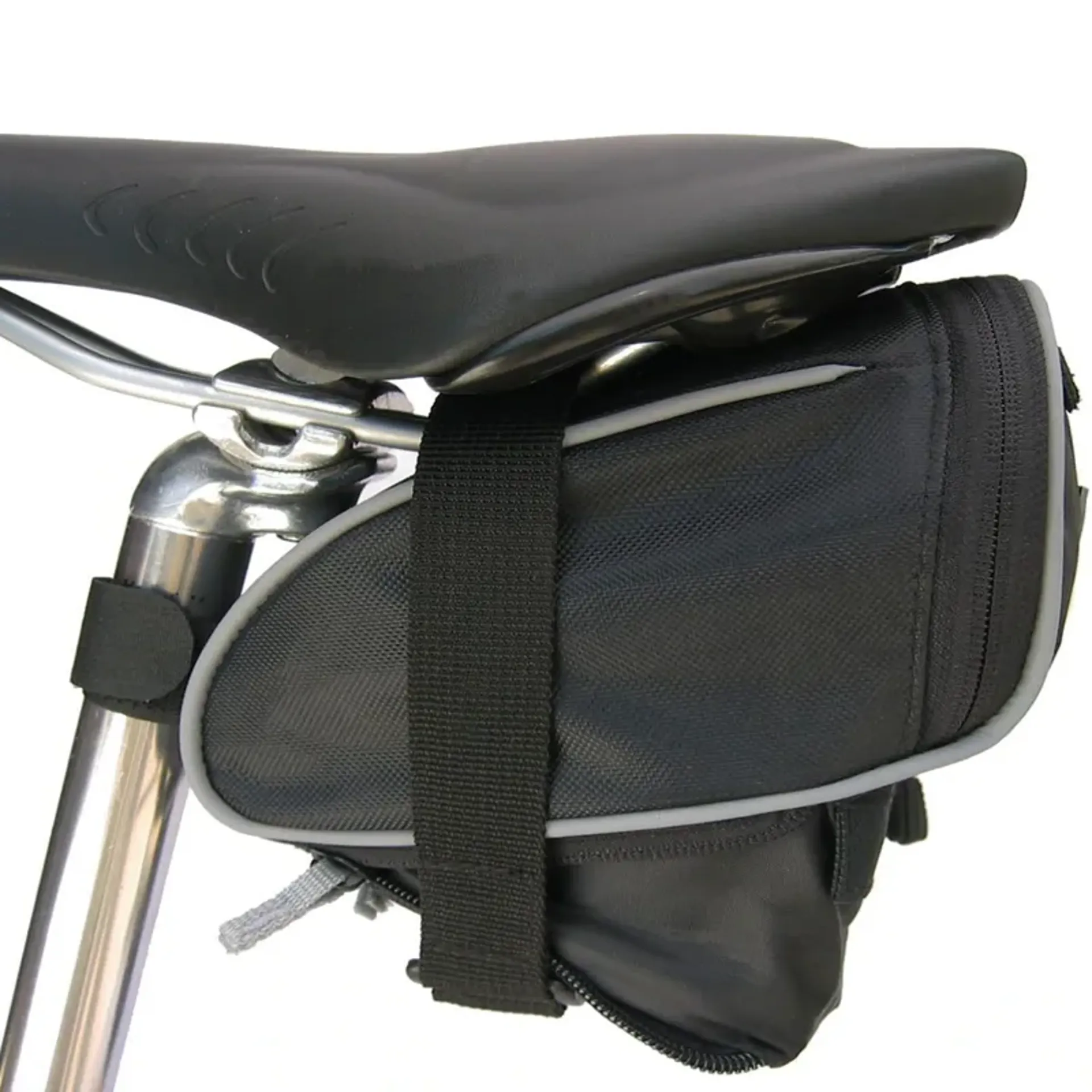 A small seat bag sized for a tube, tire levers, patch kit, and mini tool. Features heavy-duty 840 denier nylon and 360-degree reflective accents.