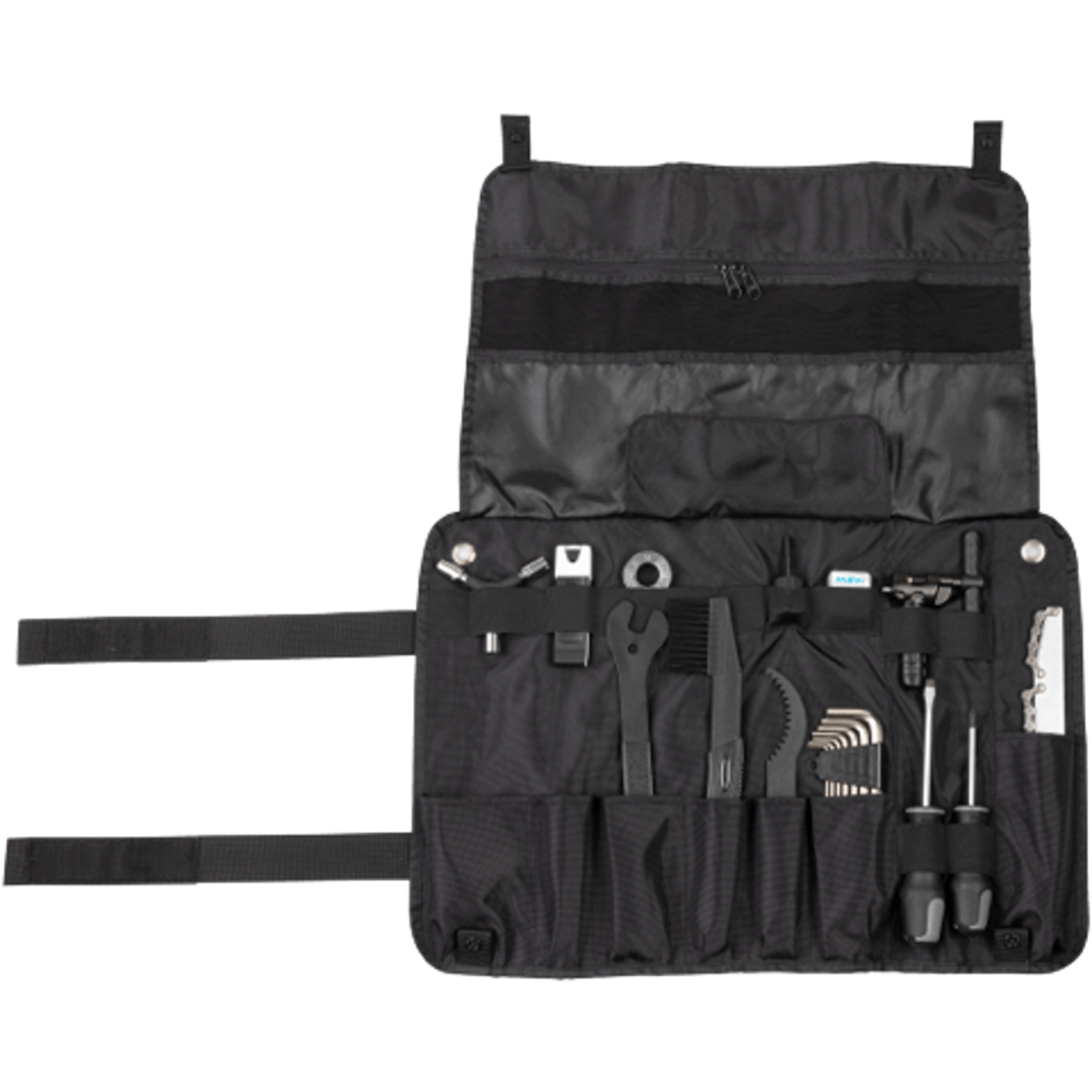 The MSW Essential Tool Wrap Kit organizes 20 common tools in a tidy travel-ready kit with a built-in workspace for knocking out general maintenance and repairs in the workshop or out on the trail. Complete with hex wrenches, tire levers, patch kits, and more, it offers durable construction, a simple yet secure hook-and-loop closure, and freedom to swap in different tools depending on your needs.